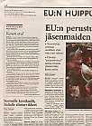 "Salaliittoteoria". Täällä päätettiin ... Tässä kuvassa Helsingin Sanomat pilkottaa vaatimattomasti Kiasman ja postitalon välissä. Kuuliaiset puoluejohtajat pitävät normaalisti majaansa Marskin vasemmalla puolella olevassa eduskuntatalossa (ei kuvassa). Kuva: Pertti Manninen. Isonna! ... EU:n perustuslaki-nimen muuttamisesta sopimus-nimeksi! Vielä joulukuussa 2003 Helsingin Sanomissa luki perustuslaki: ![]() Helsingin Sanomat sunnuntaina 14, joulukuuta 2003! Tulossa! |