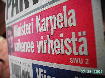 Ilta-Sanomat. Maanantai 23.05.2005. Etusivulla: "Ministeri Karpela vaikenee virheistä". Kuva: Pertti Manninen. |