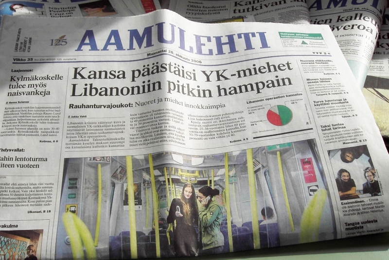 perjantaina 1. syyskuuta 2006. 2006-08-28 maanantai, Aamulehti. Etusivulla: Kansa päästäisi YK-miehet Libanoniin pitkin hampain. Kuva: Pertti Manninen. Lue! |