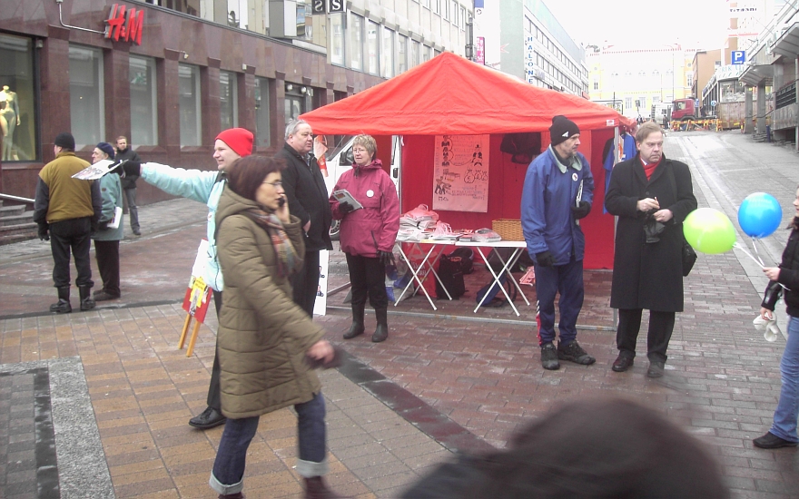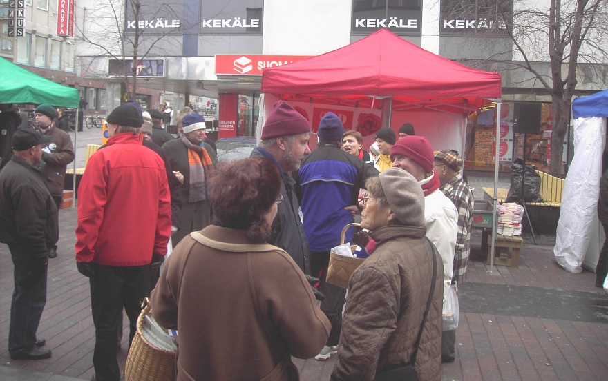 "Ehdokkaat vastaavat mielellään kysymyksiin, punapuseroinen nainen on Vasemmistoliiton Marja Pakarinen". Kuva: Pertti Manninen. Lisää kuvia tulossa! |