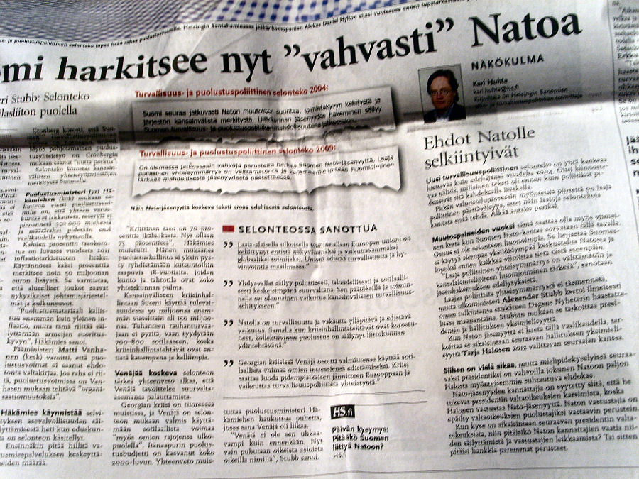 Lue! Mandaatti Afganistaniin. Pääkirjoitus keskiviikkona 2009-07-29. Lue! Mandaatti Afganistaniin 2. Pääkirjoitus keskiviikkona 2009-08-05. Lue! Jyrki Katainen: "Afganistanin murheet ovat Suomen huolia" sunnuntaina 2009-08-30. Lue! Bild.de: Angela Merkel: Frontfrau in Afghanistan: ”… wie man sie im Krieg hat” ja kommentti maanantaina 2010-12-20. Lue! Ari Puheloinen: ”Tämän takia olette siellä” ja kommentti maanantaina 2010-12-20. Lue Presidentti Martti Ahtisaari ilmiantajana. Pääkirjoitus perjantaina 2006-12-15. Lue! |