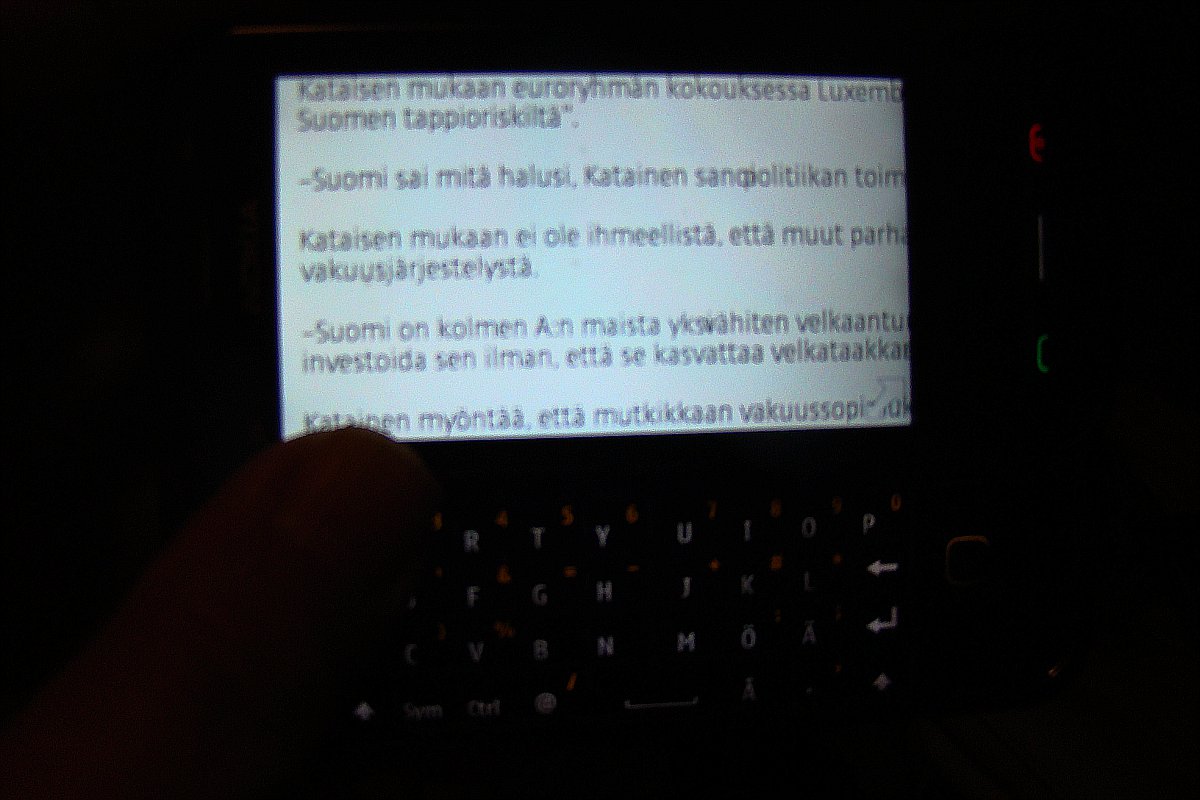 Sanomanetti 2011/10/24 -  Kuvat. YK:n päivänä Suomen lippu liehuu - J. Katainen: Suomenkin varauduttava pankkkien tukemiseen - ÜKS ELAMATA JÄÄNUD ELU... - Tänään  on kuoleman päivä, - Nato on onnistunut ampumaan Gaddafin säpäleiksi - Monet kunnat eivät enää huolehdi veteraanien kuntoutuksesta - Kuva: Asunnottomien yö tuli lopulta esiin kun nuoret tarjoilivat hernerokkaa hiukan viileässä illassa. -  Kuva. Kirkas syyspäivä on vaihtunut illan hämäryyteen kuun ja tähtien valaisemaa yötä kohti.  Pohjois-Savo. Keitele. Nilakka. - In the chaos of Sirte, anti-Gaddafi fighters are killing each other. Guardian - "Valoa kansalle!" Kuvat 1, 2 ja 3. Jyrki Katainen, vakuus, ymmärtämisen vaikeus - Kuva. Rytmi -  Kuva. Kissa ihmettelee ristiriitaisia uutisia samasta lehdestä samasta asiasta samana päivänä. - LAINAUS TALOUSMEDIA-blogista. Vakuushuijaus: - Vakuudet: Mallioppilas Suomi lähettää rahaa Kreikkaan etuajassa! - Kuva. Rasmus-kissa ihmettelee ... Kuvapari. "Ventti ja Kymppi" - Ventti 21 M. Syrjälä. Kymppi 10 J. Litmanen. Kuvat: Erika Manninen. - Kuva. Suomi voittaa aina - Neste Oil Rally Finland - Suomen MM-ralli - Jyväskylän MM-ralli. - Kuva. Käden ojennus. Karuselli. - maanantai 24.10.2011 - etusivu - Nettisanomat - Sanomanetti - Blogi: Viikkosanomat.fi - Kuvasanomat - Sanomatori  - Viikkosanomat - Härkää sarvista --- , , , , , , , , , , , , ,  - Katainen, pankit, varautuminen, pääomitus, YK:n päivä.  Gaddafi, Libya, Nato, kuolema, Eesti, Afganistan, Irak,