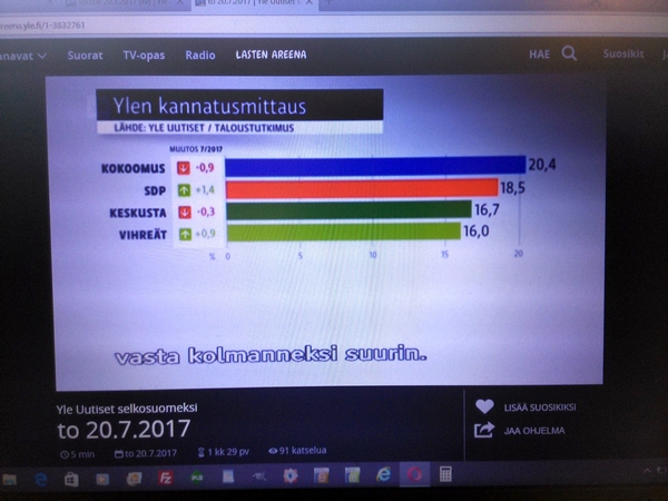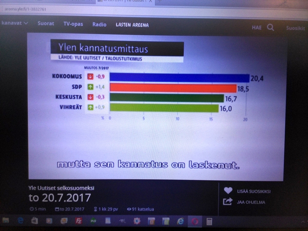 Kuvat: Pertti Manninen Areenasta torstaina 20.07.2017. Yle:n surullinen Taloustutkimus Oy:llä teettämä "puoluekannatusarvio" KUVASARJA |