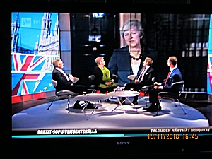 Brexit. Live. Ylen A-studio: "Odotellaan lehdistötilaisuutta, mutta se näyttää siirtyvän. Hallitus on ollut koolla jo lähes neljä tuntia ja istuvat edelleen." |
