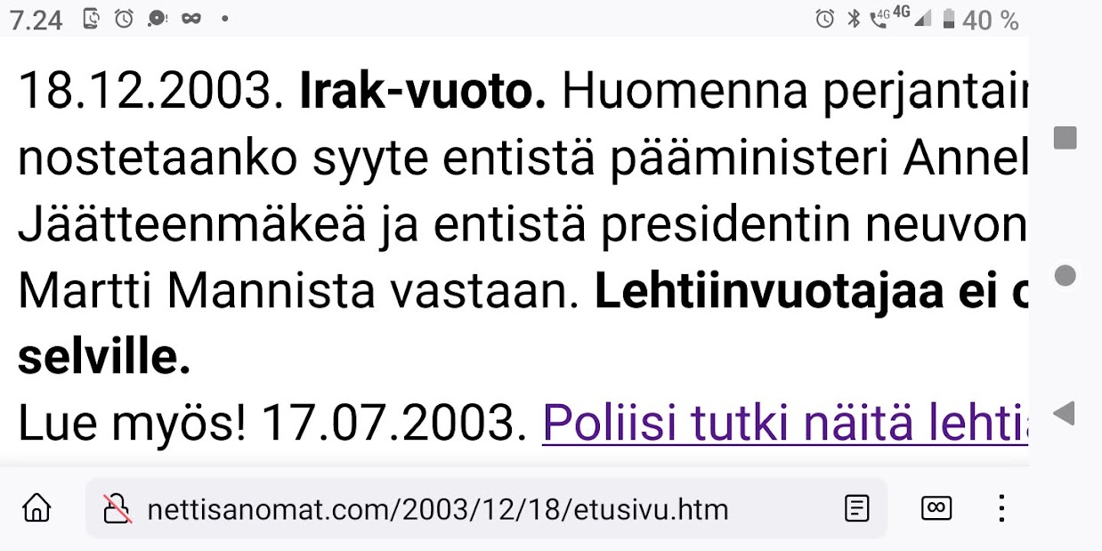 14.3.2023. Osattiin sitä ennenkin, 20 vuotta sitten. Arkisto 2003 tammikuu. Vuoden nuolaisu. Paavo Lipponen. Lue! |