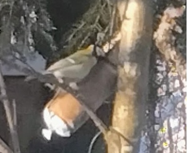 Kuva. Orava tervehtii aamutuimaan pähkinän heittäjää. Uusimaa. Kirkkonummi. Kauhala. Björkdal sunnuntaina 11.1.2026 9:19. Pertti Manninen. |