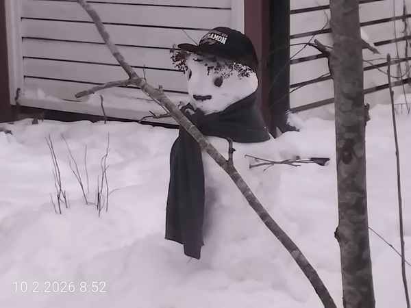 Lumiukko. Kuva. Kunnolla lunta kunnon ukolle, vihdoinkin. Uusimaa. Kirkkonummi. Heikkilä. Tiistai 12.1.2026 8:52. Kuva Pertti Manninen kun kerran kohdalle sattui. |