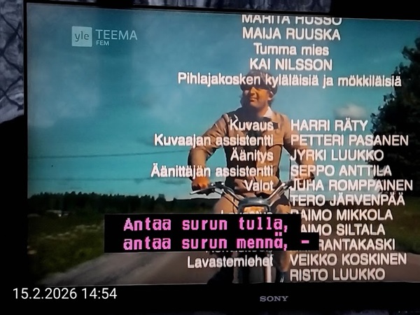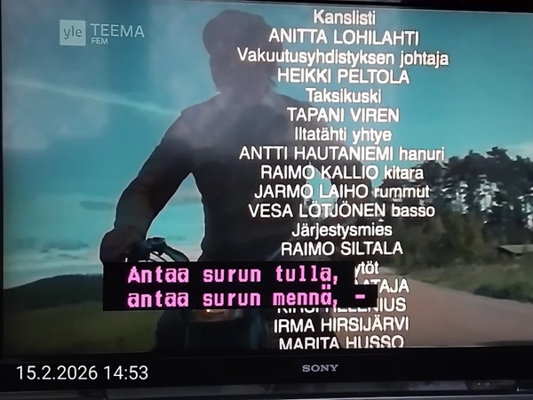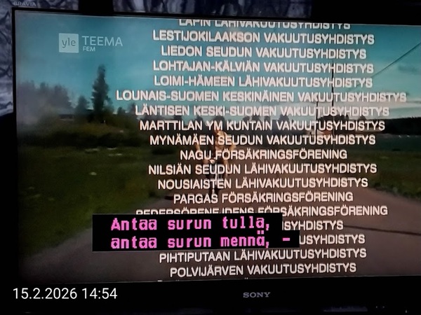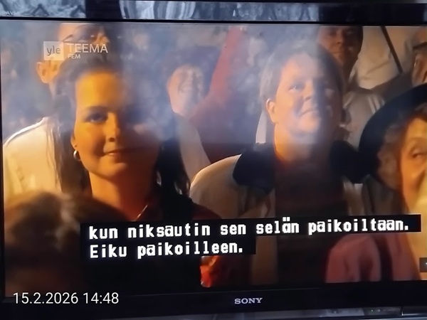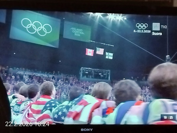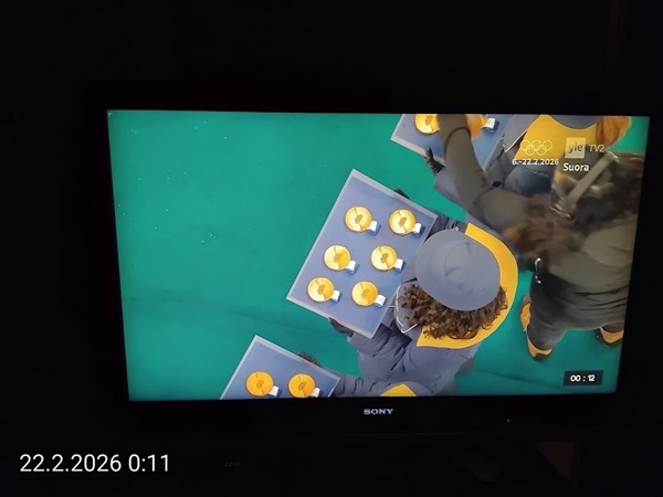 Hetki kuutena hetkenä hetkeä myöhemmin. Kuva Ylen lähetyksestä lauantaina 7.2,2026 21:24, Pertti Manninen. |