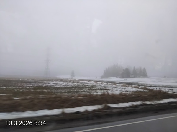 Tiistai 10.3.2026. Kontrasteja. Tänään tiistaina 10.3.2026 08:34 harmaata. Uusimaa. Kirkkonummi. Oitmäki. Kuva ohikiitäen Pertti Manninen. |