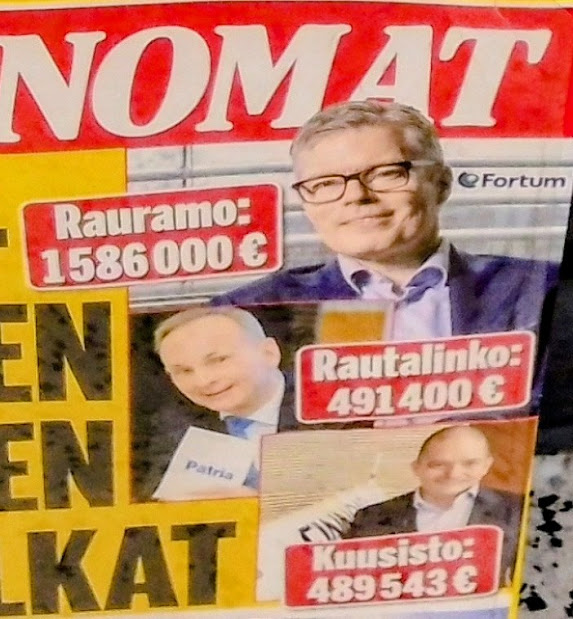 Suomen Pankin pääjohtaja Sirkka Hämäläinen nimitettiin aikoinaan Euroopan keskuspankin johtokunnan jäseneksi, peräti varajohtajaksi (?). Tiedotustilaisuudessa kysyttiin, eikö ole väärin, että hän nauttii yhtäaikaa huippueläkettä Suomen pankista, joka on tavallaan Euroopan keskuspankin filiaali, ja huippupalkkaa Euroopan keskuspankista. TV-kuva tästä on olemassa: Sirkka Hämäläinen jo poistuu tilaisuudesta ja kävellessään ilmoittaa: "Ei se ole väärin, olen tehnyt niin paljon Suomen hyväksi". Lainaus muistin varainen. Nettisanomat. Pertti Manninen. Torstai 2008-05-08. ![]() Legenda: "Jos sä olet niin helvetin fiksu, niin miksi sä olet niin helvetin köyhä." Henrik Kuningas. Nyt 2006: "Pörssissä Sammon osake kallistui torstaina lähes kahdeksan prosenttia. Seurauksena Wahlroosin osakeomistuksen arvo kasvoi 208 miljoonasta eurosta 224 miljoonaan euroon." Helsingin Sanomat perjantaina 2006-11-10. Kuva: "Super Nova". Pertti Manninen. Pääkirjoitus. Vaurastumisesta tulee tehdä hyve eikä sitä tule tulkita "riistoksi". Paljastetaan kuka näin sanoi ja siinä sivussa jonkinlainen raapaisu valtionyhtiöiden hävittämisestä eli yksityistämisestä. Kymmeniä henkilöitä kymmenissä kirjoituksissa, nimiä Koivistosta lähtien! Mukana myös Suomen taloushistorian kavalin ja peitellyin pelastusoperaatio, Suomen Yhdyspankin omaisuuden siirtäminen turvaan. Aivoina Björn Wahlroos ja Ahti Hirvonen. 2006-11-11. "Pankki oli matkalla kohti loppuaan, osakkeenomistajien rahat ja omaisuudet olivat vaarassa. Jo vuotta ennen Esko Ahon pankkitukipäätöstä säätytalolla oli Aleksanterinkadun vanhaan pankkisaliin kokoontunut Suomen Yhdyspankin arvovaltainen hallintoneuvosto. Paikalla oli ilaskiveä ehnroothia björnbergiä pankin napamiehiä ja omistajia. Johtokunnan jäsenet Ahti Hirvonen ja Björn Wahlroos lukivat madonlukuja ja johtivat puhetta. Lopuksi esitettiin Suomen taloushistorian kavalin ja peitellyin pelastusoperaatio, oli turvattava paikallaolijoiden ja muidenkin pankkien suuromistajien osakkeet ja omistukset. Vanhan ja kunnianarvoisen pankin yhtiöjärjestys muutettiin huomaamatta veronmaksajien silmien edessä. Velkoja ja sitoumuksia siirrettiin vanhasta SYP:stä Pohjoismaiden Yhdyspankki Oy:lle, joka kas kummaa muutti nimensä heinäkuussa vuonna 91 Suomen Yhdyspankiksi. Vanha ja kunnianarvoisa entinen SYP se muutettiin Unitas Oy:ksi. Uudelle yhtiölle roskapankki SYP:lle jäivät sekkitilit myös yleiseen liikenteeseen lasketut velkakirjat, sekä ulkomaiset että kotimaiset, ne siirrettiin tälle susipankille." Jukka Kilpi. Etiikka puoltaa vapautusta ylivoimaisista veloista. 2005-04-16 mm! |