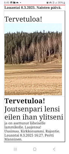 Sanomanetti nro 3091 - Lauantai 31.5.2025. - SIVU4 - Kuvalinkit etusivuille: Maaliskuussa 2025. 1.3. 2.3. 3.3. 6.3. 8.3. 12.3. 13.3. 14.3. 19.3. 23.3. 24.3. 25.3. 27.3. 29.3. 31.3. Maaliskuussa 2025. . . -------- JJKaraoke Tmi Jari Jääskeläinen 03600 Karkkila, Uusimaa 050 40 10 130 jaske [ ät ] jjkaraoke.fi Palveluehdot JJ Karaoke ei vastaa karaoken aiheuttamasta lauluriippuvuudesta eikä äkillisestä mielialan kohoamisesta. jjkaraoke.fi - Arkisto. 20 vuotta sitten. "Ensimmäinen hellepäivä." 26.05.2005. Katso! ------ - - - - --- ---- SMILE from MODERN TIMES - ---SIVU4 - Lauamtai 31.5.2025. - Kuvasanomat - Sanomatori - Viikkosanomat - Härkää sarvista - 12.fi - N:o 3091 - 2025-06-01 , nettiin 2025-06-01 21:09, linkkejä 2025-06-01. "Haukkaavan logon" teki Jaikon kurssilla 1999 Mika. Ensimmäisen kerran logo oli lehdessä tortaina 30.9.1999. Pari vuoden jälkeen se korvautui steriilillä kirjainlogolla. Nyt se on taas mukana!