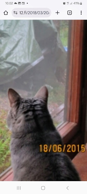 | 19.12.2018. "Kissa oleilee mieluummin sisätiloissa. Lumista maisemaa ja lumitouhussa olevaa isäntääkin on kiva katsella lämpimän ikkunan takaa."