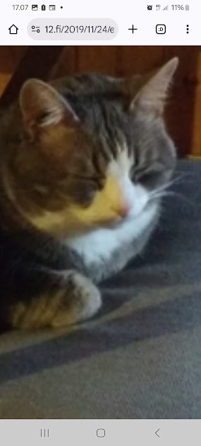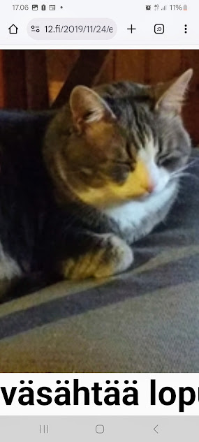 24.11.2019. Sunnuntai 24.11.2019. Marraskuu. Ajan kuvia. 22:10 Rasmus-kissa väsähtää lopulta tuolilleen oltuaan ihan oman hoitajansa sylissä useita tunteja matkan jälkeen. Kuvat: Pertti Manninen sunnuntaina 24.11.2019 11:12- 22:10 Keski-Suomen Jyväskylässä ja Uudenmaan Kirkkonummella. Kuvien paikkakunnat: Jyväskylä; Helsinki, Kirkkonummi Suomessa ja Irak sekä Libyan rannikko. https://www.nettisanomat.com/2019/11/24/etusivu.html