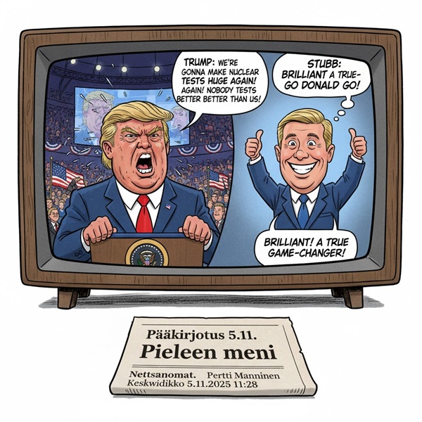 SANOMANETTI - Sanomanetti nro 3197 - Sunnuntai 16.11.2025 - Sivu4 - Nettisanomat tutkii: Uniper ja Sanna Marinin hallitus. Nyt "reilut" kolme vuotta myöhemmin paheksutaan lehtien pääkirjoituksia myöten, ettei silloinen pääministeri Sanna Marin ole käsitellyt uudessa kirjasssaan Toivo on tekoja Uniperia sanallakaan. TÄ-Copilotille esitettyyn kysymykseen vastaus on aika lohduton. Kysymys: Oliko Suomella, Fortumilla muuta mahdollisuutta kuin myydä Uniper suurella tappiolla? Olisiko kaupan pitkittäminen tai kokonaan tekemättä jättäminen voinut tulla vielä kalliimmaksi? Olisiko Saksa voinut lypsää rahaa loputtomasti? Lyhyt vastaus: Fortumilla ei käytännössä ollut muuta vaihtoehtoa kuin myydä Uniper Saksan valtiolle, sillä yhtiön tappiot kasvoivat hallitsemattomasti energiakriisin seurauksena. Kaupan pitkittäminen olisi todennäköisesti johtanut vielä suurempiin tappioihin, ja Saksa olisi voinut jatkaa Uniperin tukemista vain sillä ehdolla, että Fortum luopuu omistuksestaan. - Kuva korostaa Fortumin pakkoraon ja Saksan neuvotteluaseman symboliikkaa entistä vahvemmin. - Koko TÄ-Copilot keskustelu täällä. Linkkeineen: ----------- SANOMANETTI - Sanomanetti nro 3196 - Lauantai 15.11.2025 - Kuvat - Ensilumi. Ensi lumi 7:30 Täällä myös 10:48 Tuo nyt joltain näyttää! 11:18 Keskustelijoina Pertti M. ja Erika N. Paikat: Uusimaa. Kirkkonummi. Kauhala. Björkdal. Keski-Suomi. Jyväskylä. Taulumäki. Rajakatu. Aika: Lauantai 15.11.2025. ---------------- SANOMANETTI - Sanomanetti nro 3195 - Perjantai 14.11.2025 Arkisto. 20 vuotta sitten 14.11.2005. - .Kuva. "Me emme ole oikeastaan ikinä puhuneet". Tarja Turunen. Kuva: Pertti Manninen. - "Mediamylläkkä Nightwishin ympärillä jatkuu. Turunen yhä järkyttynyt, vaikka oli itsekin päättänyt lähteä. Mediamylläkkä Nightwish-yhtyeen ympärillä sai jatkoa perjantaina, kun erotettu laulaja Tarja Turunen saapui Suomeen ja piti lehdistötilaisuuden. Kymmenien toimittajien ja kuvaajien ympäröimänä esiintynyt Turunen puhui yli tunnin omia näkemyksiään tapausten kulusta. Pitkän tarinan jälkeen yllättävältä tuntui lähinnä se, että ratkaisuun päädyttiin vasta nyt. Turusen mukaan yhteistyö oli jo vuosia erittäin vaikeaa. Suurimpana syynä hän piti tiivistä keikkatahtia ja puhumattomuutta yhtyeen jäsenten välillä. - Me emme ole oikeastaan ikinä puhuneet, Turunen sanoi." Kauppalehti Presso, Mirjami Saarinen lauantaina 12.11.2005. Kuvakollaasi Pressossa julkaistun Pekka Karhusen kuvasta Pertti Manninen. - Tänään 20 vuotta myöhemmin keskustelu. TÄ ChatGPT. 12.11.2025. Haluatko, että lisään tähän vielä kuvaehdotuksen ja kuvatekstin (esimerkiksi julkaisua varten verkkoartikkeliin)? Se voisi vahvistaa tunnelmaa — esimerkiksi kuva Turusesta lehdistötilaisuudessa tai symbolinen kuva hiljaisuudesta ja esiintyjän yksinäisyydestä. Tee symbolinen kuva. Kuva luotu Keskustelu 12.11.2025: 1. "Kerro seuraavan katkelman taustasta ja tunnelmasta: "Mediamylläkkä Nightwishin ympärillä jatkuu. Turunen yhä järkyttynyt, vaikka oli itsekin päättänyt lähteä. ... 2. Kulttuuriesseen tyyliin. 3. Verkkomedian muodossa. 4. Tee symbolinen kuva, -------------SANOMANETTI - Sanomanetti nro 3194 - Torstai 13.11.2025 - Kuvat - Tapuli kuoriutuu telineistään. Pitkään remontissa ollut Kirkkonummen kirkon tapuli näyttää kohta uuden ehomman värinsä. Syksyn harmaudessa pilkistää tapulin uusi väri. Uusimaa. Kirkkonummi. Kirkkotori. Torstai 13.11.2025 11:14 ja 11:30. Kuvat Pertti Manninen. -- . ------------------ SANOMANETTI - Sanomanetti nro 3193 - Keskiviikko 12.11.2025 Kopio eilispäivän lehdestä. - ---------- SANOMANETTI - Sanomanetti nro 3192 - - - - - - - - - - - - - - - - - ----------------------Nettisanomat.com - N:o 3106 - Torstai 3.7.2025 -Kuva. Mettä keräämässä, uutterasti. Uusimaa. Siuntio. Päivärinne. Keskiviikko 3.7.2025 13:22. Kuva Pertti Manninen. - Linkki. Rasmuksen matkassa 17 vuotta. Kiitos. - Vuodet 2008 - 2025. --------- - - - - -- - - - - ---- SMILE from MODERN TIMES - --- - Sivu4 - Lauantai 16.11.2025. - Kuvasanomat - Sanomatori - Viikkosanomat - Härkää sarvista - 12.fi - N:o 3197 - 2025-11-16, nettiin 2025-11-16 19:46 , linkkejä 2025-11-16.