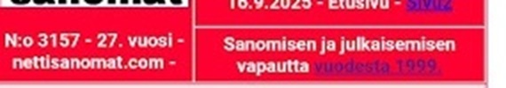 N:o 3158 - 27. vuosi - nettisanomat.com - 2025 Syyskuu - Torstai 18.9.2025 - Etusivu - |