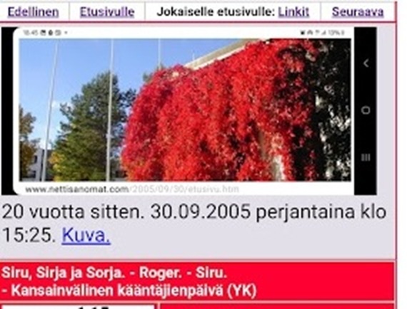 | 20 vuotta sitten 21.9.2005 - 23.9.2005. |
